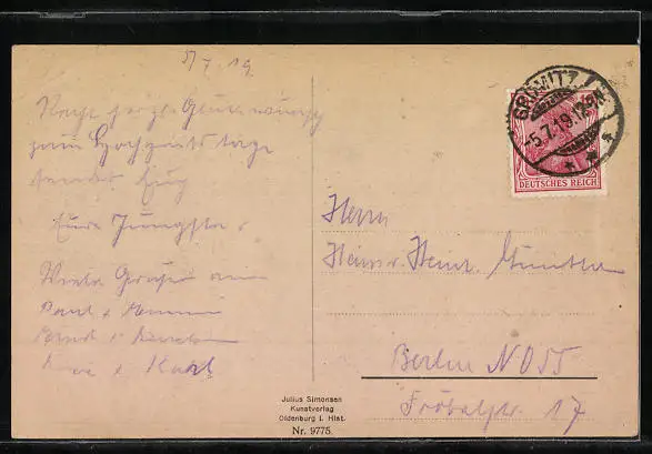 alte Ansichtskarte, gelaufen 1919, Eckknick re. oben, guter Zustand