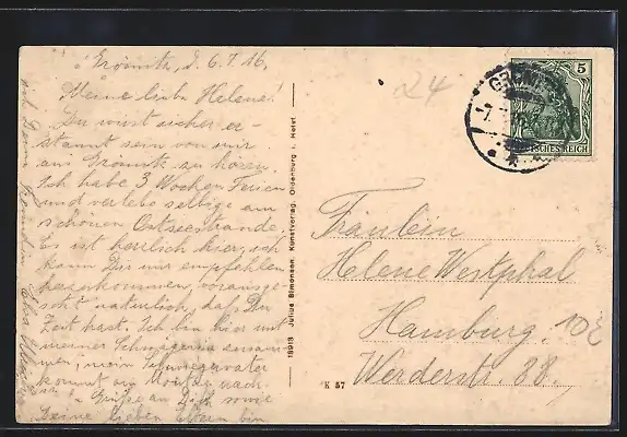 alte Ansichtskarte, gelaufen 1916, Eckknick li. oben, guter Zustand