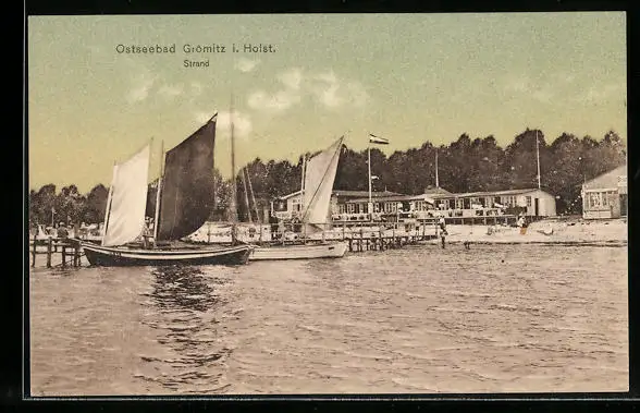 AK Grömitz i. Holst., Strand von der See aus gesehen
