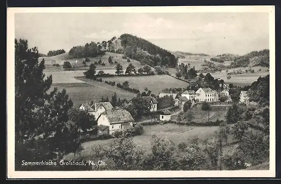 AK Groisbach, Totalansicht mit Bergen aus der Vogelschau