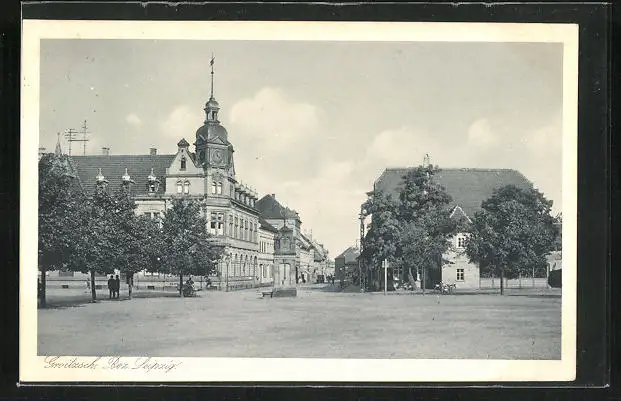 AK Groitzsch Bz. Leipzig, Brunnen auf einer Freifläche