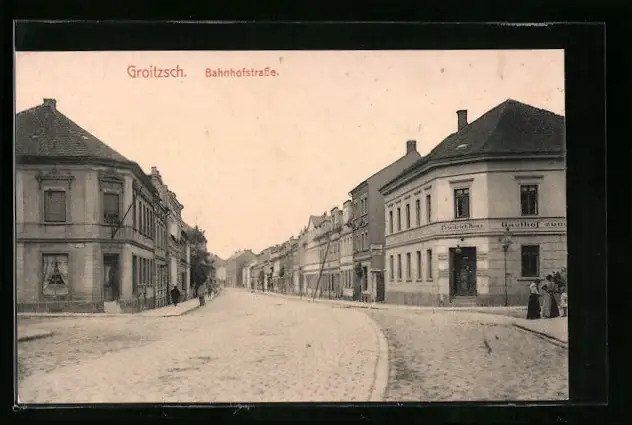 AK Groitzsch, Gasthof zum Kronprinz in der Bahnhofstrasse