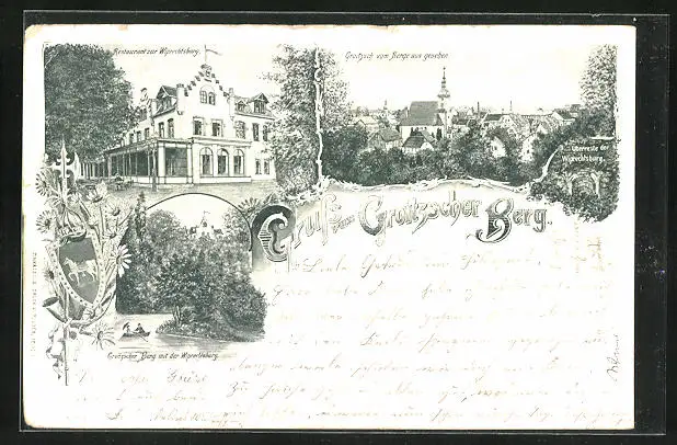 AK Groitzsch, Restaurant zur Wiprechtsburg, Ortsansicht
