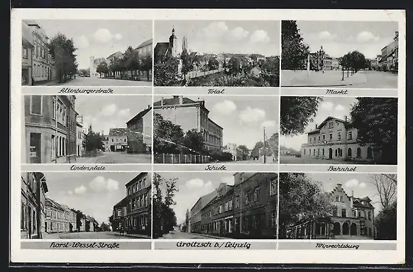 AK Groitzsch b. Leipzig, Schule, Bahnhof, Strasse
