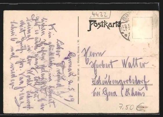 alte Ansichtskarte, gelaufen 1919, Briefmarke entfernt, Bugspuren re. unten, Eckknick li. oben, guter Zustand