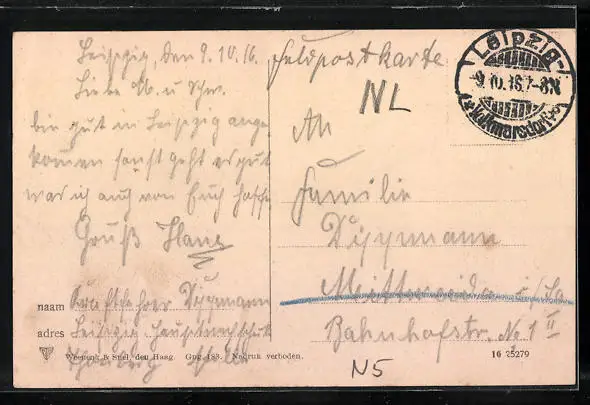 alte Ansichtskarte, gelaufen als Feldpost 1916, Stempelspur, guter Zustand