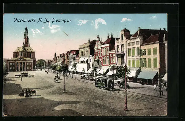 AK Groningen, Vischmarkt N. Z., Strassenbahn