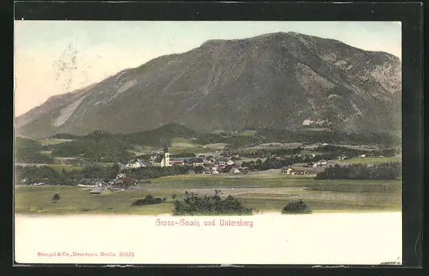 AK Gross-Gmain, Ortsansicht mit Untersberg