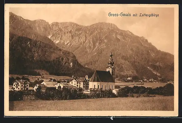AK Gross-Gmain, Ortsansicht und Lattengebirge