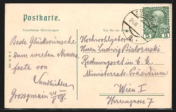 alte Ansichtskarte, gelaufen 1908, guter Zustand