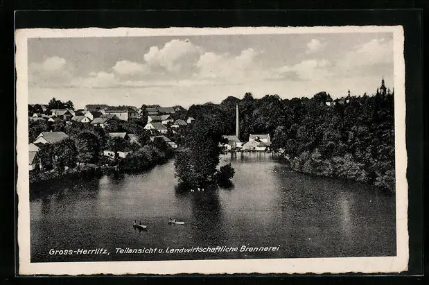 AK Gross-Herrlitz, Teilansicht und Landwirtschaftliche Brennerei