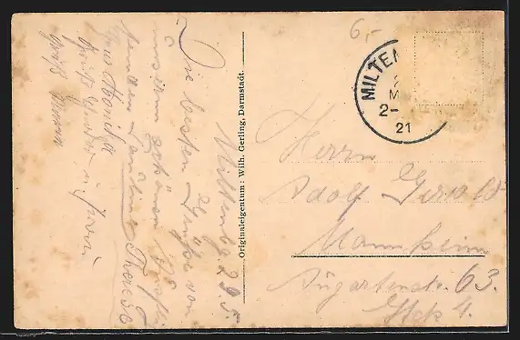 alte Ansichtskarte, gelaufen 1921, Briefmarke entfernt, guter Zustand