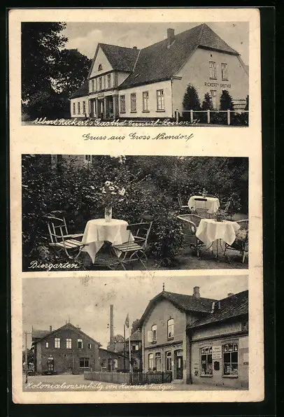 AK Gross Niendorf, Albert Rickerts Gasthof, Kolonialwaren von Heinrich Tiedgen