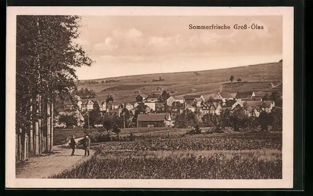 AK Gross-Ölsa, Ortspanorama am Waldrand