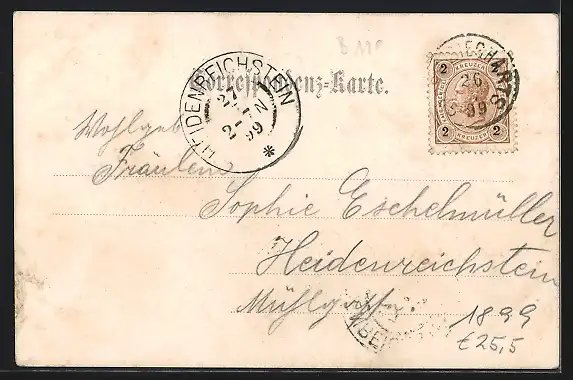 alte Ansichtskarte, gelaufen 1899, Stempelspur, guter Zustand