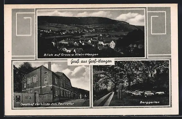 AK Gross-Wangen, Gasthof zur Linde, Berggarten, Teilansicht mit Klein-Wangen