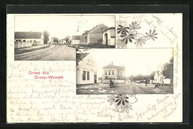 AK Gross-Wossek, Strassenpartie mit Gasthaus, Strassenpartie