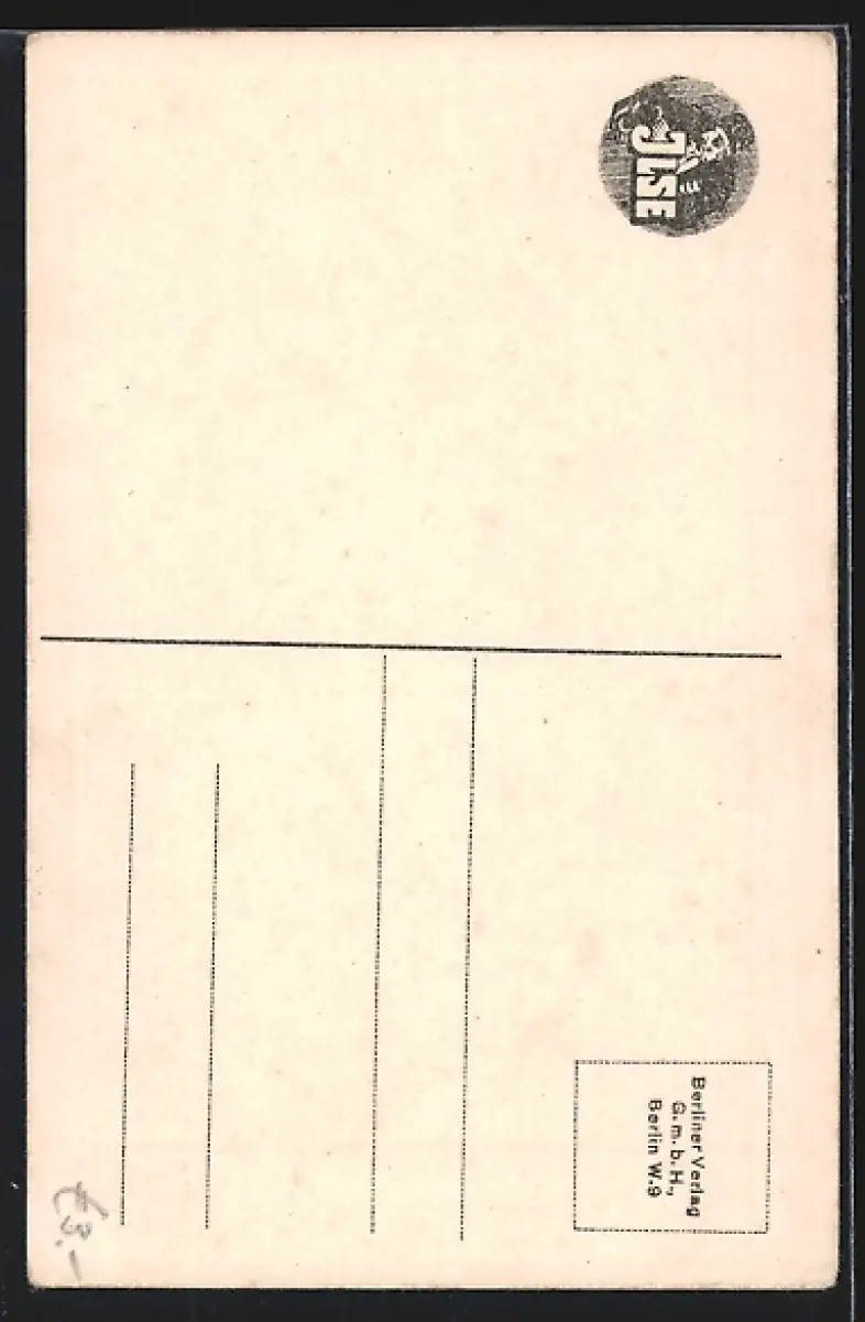 Personenbezogene Daten auf der Rückseite der Karte wurden durch blauen Textmarker unkenntlich gemacht. Die blauen Stellen sind auf die Vorderseite durchgeweicht und wirken sich negativ auf das Postkartenfoto aus