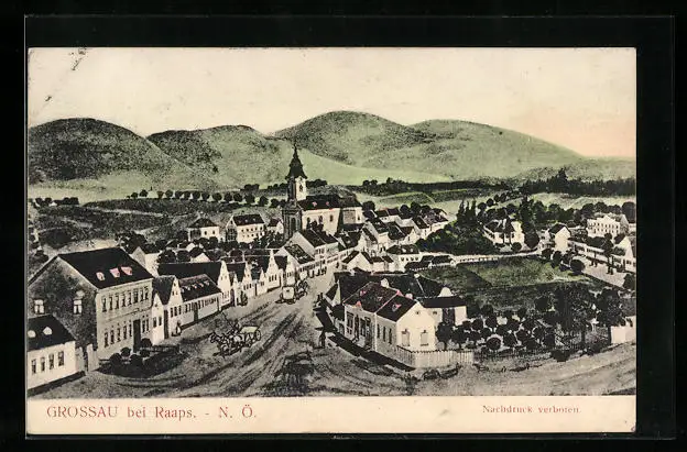 AK Grossau bei Raabs, Ortsansicht aus der Vogelschau