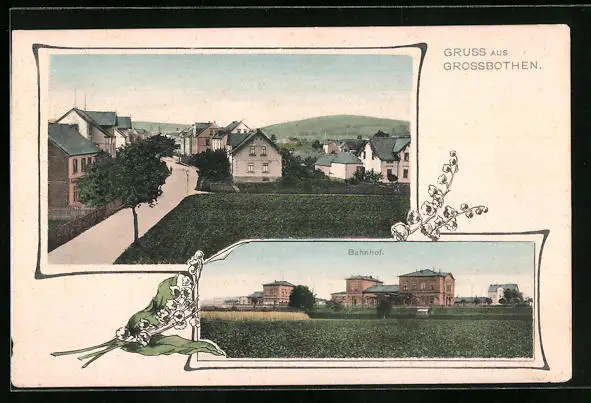 AK Grossbothen, Blick zum Bahnhof, Strassenpartie