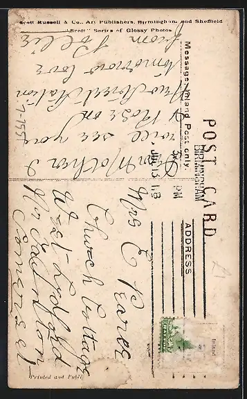 gelaufen 1913, Briefmarke entfernt, rückseitig Oberflächenschaden, rückseitig Klebe- und Papierreste, Eckknicke li. unten u. re. oben, guter Zustand