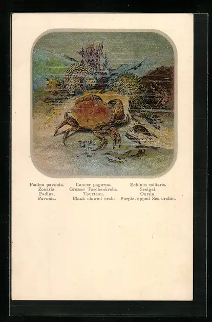 AK Grosser Taschenkrebs, Zonaria und Seeigel am Meeresgrund