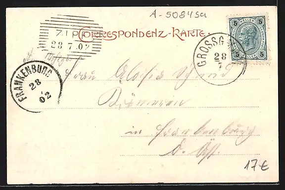 alte Ansichtskarte, gelaufen 1902, Abriebspuren li. u. re., guter Zustand