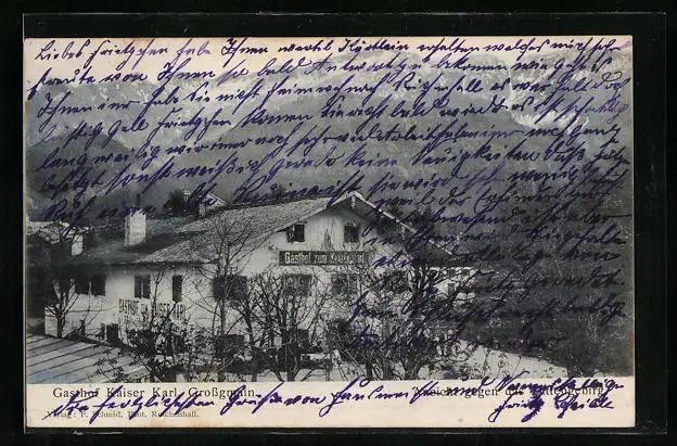 AK Grossgmain, Gasthof Kaiser Karl gegen das Gebirge