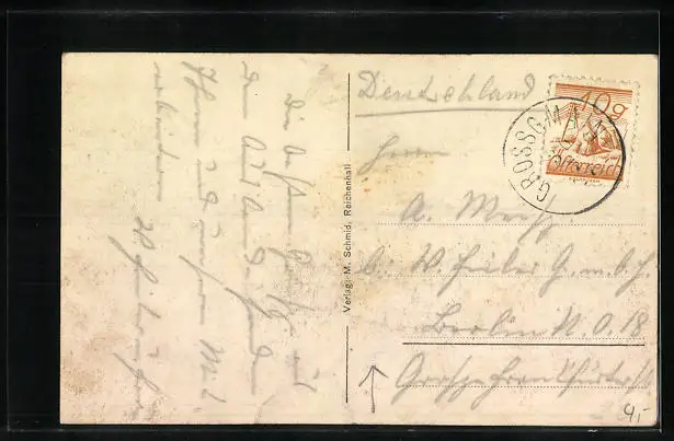 alte Ansichtskarte, gelaufen, Bugspuren in der Kartenmitte, guter Zustand