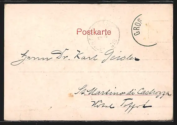 alte Ansichtskarte, gelaufen, Briefmarke entfernt, guter Zustand