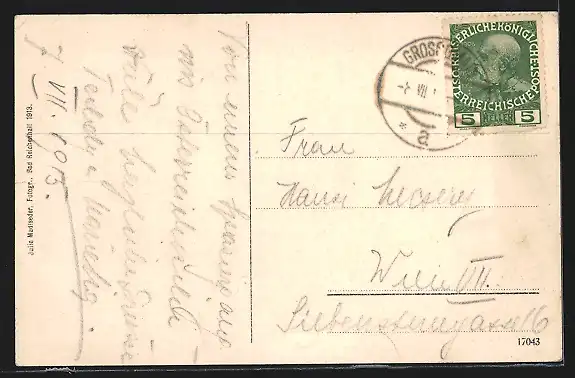 alte Ansichtskarte, gelaufen 1915, Bugspur re. mittig, guter Zustand