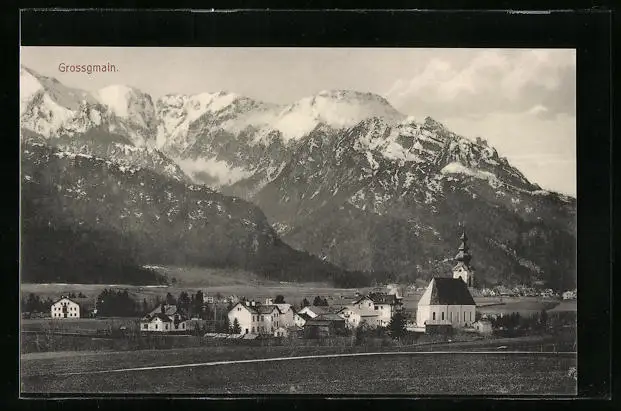 AK Grossgmain, Teilansicht mit Kirche