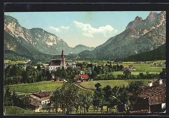 AK Grossgmain b. Bad Reichenhall, Ortspartie mit Kirche