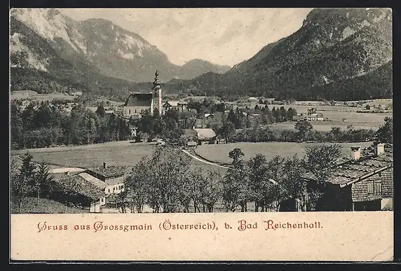 AK Grossgmain b. Bad Reichenhall, Ortspartie mit Kirche