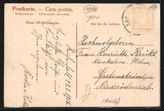 alte Ansichtskarte, gelaufen, Briefmarke entfernt, Eckknick re. unten, guter Zustand