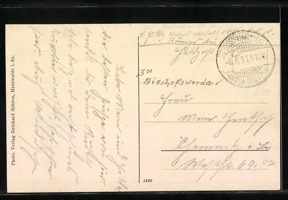 alte Ansichtskarte, gelaufen als Feldpost 1916, guter Zustand