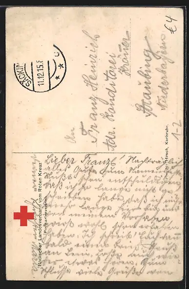 gelaufen 1915, Briefmarke entfernt, guter Zustand