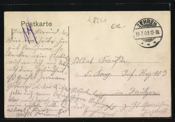 alte Ansichtskarte, gelaufen 1909, guter Zustand