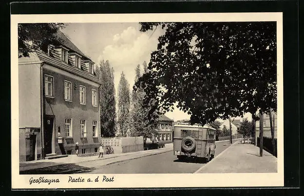 AK Grosskayna, Partie an der Post mit Automobil