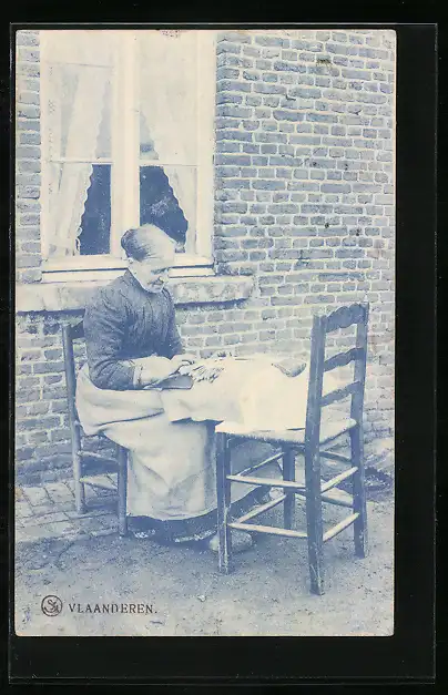 AK Grossmütterchen beim Spitzen klöppeln vor dem Haus