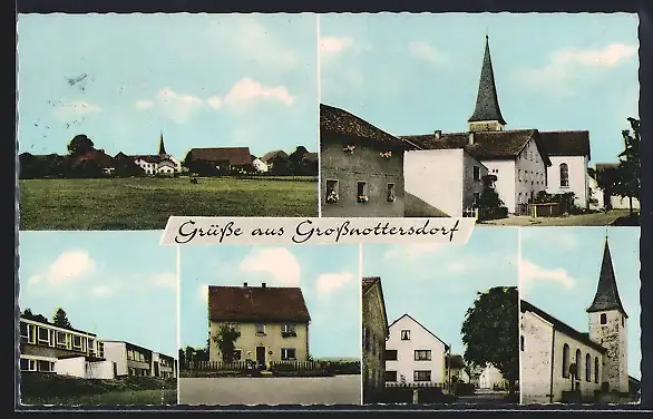 AK Grossnottersdorf /Mfr., Strassenpartie mit Kirche und Wohnhäuser