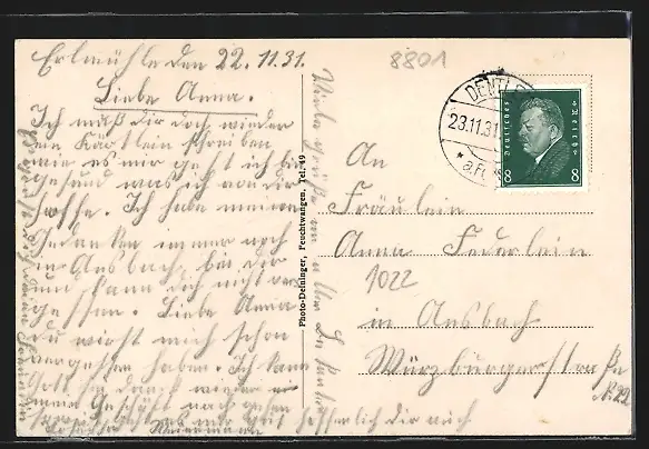 alte Ansichtskarte, gelaufen 1931, guter Zustand
