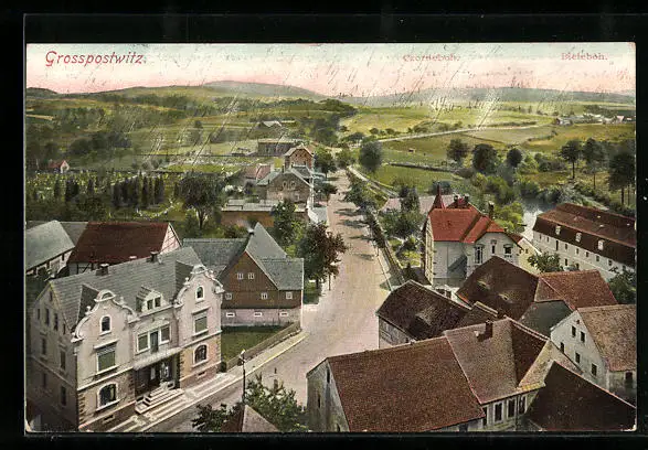 AK Grosspostwitz, Ortspartie aus der Vogelschau