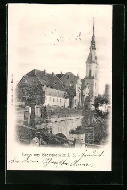 AK Grosspostwitz i. S., Ortspartie mit Kirche