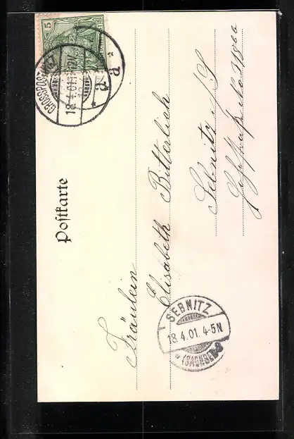 alte Ansichtskarte, gelaufen 1901, Stempelspur, guter Zustand