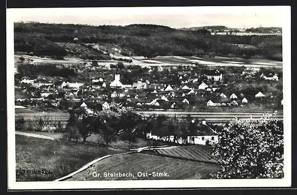 AK Grosssteinbach /Stmk., Ortsansicht mit blühenden Bäumen