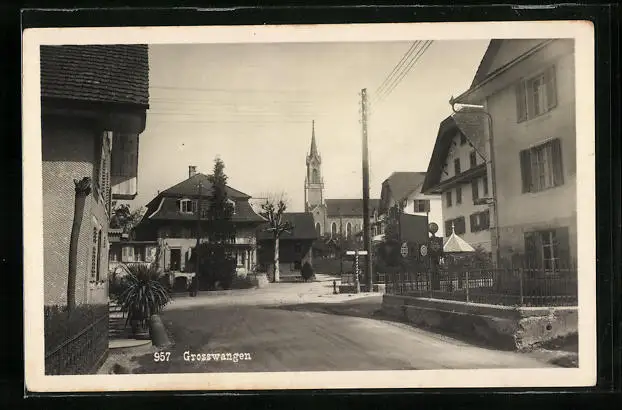 AK Grosswangen, Strassenpartie mit Kirchturm