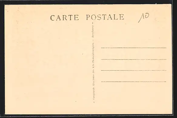 Personenbezogene Daten auf der Rückseite der Karte wurden durch blauen Textmarker unkenntlich gemacht. Die blauen Stellen sind auf die Vorderseite durchgeweicht und wirken sich negativ auf das Postkartenfoto aus
