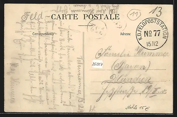 gelaufen 1914, rückseitig Klebe- und Papierreste, guter Zustand