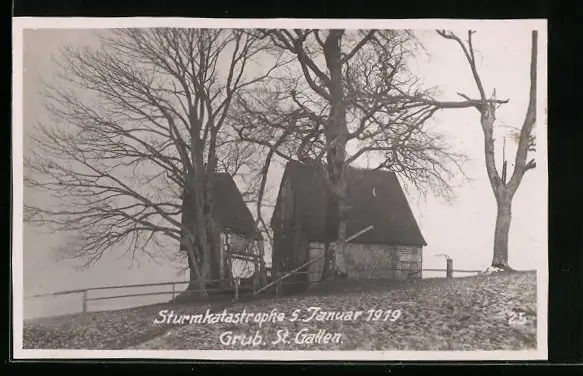 AK Grub, zerstörtes Haus nach der Sturmkatastrophe 1919